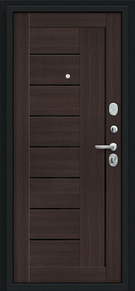 Надежная входная Дверь Браво Проф Букле черное/Wenge Veralinga премиум класса по цене 32 913 руб. Большая толщина стали защитит от проникновения в ваш дом, квартиру или коттедж. Используется очень качественная фурнитура: замки, цилиндры, ручки, защелки. Покрытие и отделка двери изготовлено под внимательным контролем производителя. Дверь имеет долгий срок службы и гарантию.
