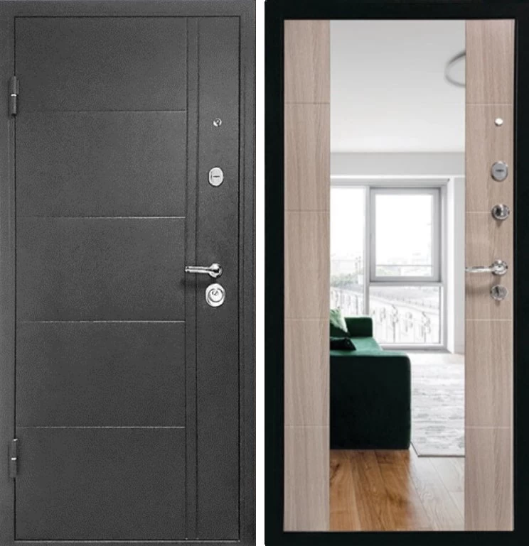 Надежная входная Дверь Эверест Зеркало Сандал Серый премиум класса по цене 33 743 руб. Большая толщина стали защитит от проникновения в ваш дом, квартиру или коттедж. Используется очень качественная фурнитура: замки, цилиндры, ручки, защелки. Покрытие и отделка двери изготовлено под внимательным контролем производителя. Дверь имеет долгий срок службы и гарантию.